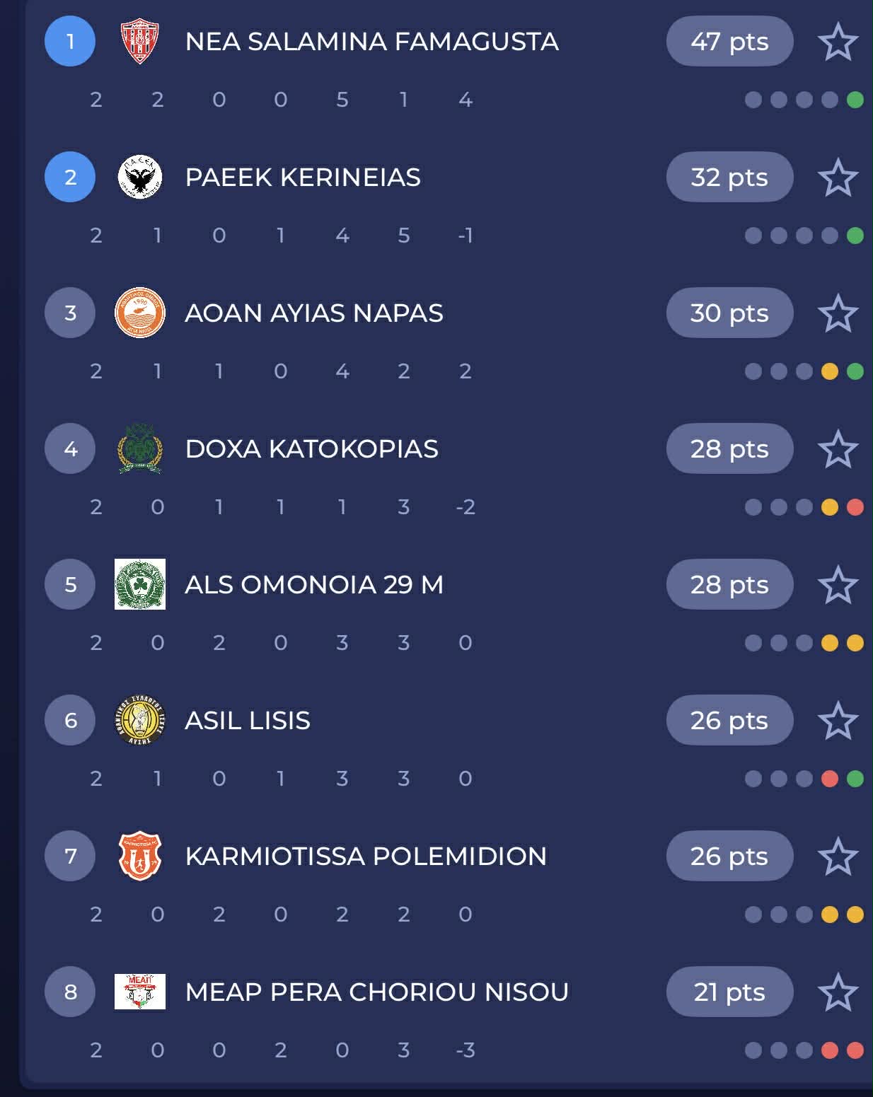 Η Νέα Σαλαμίνα επικράτησε με 4-1 της ΠΑΕΕΚ και βρίσκεται στην 1η θέση με 47 βαθμούς, στο +15 από τη 2η ΠΑΕΕΚ. Στο άλλο παιχνίδι για τον δεύτερο όμιλο Διγενής Μόρφου και ΑΠΕΑ έμειναν στο 1-1.